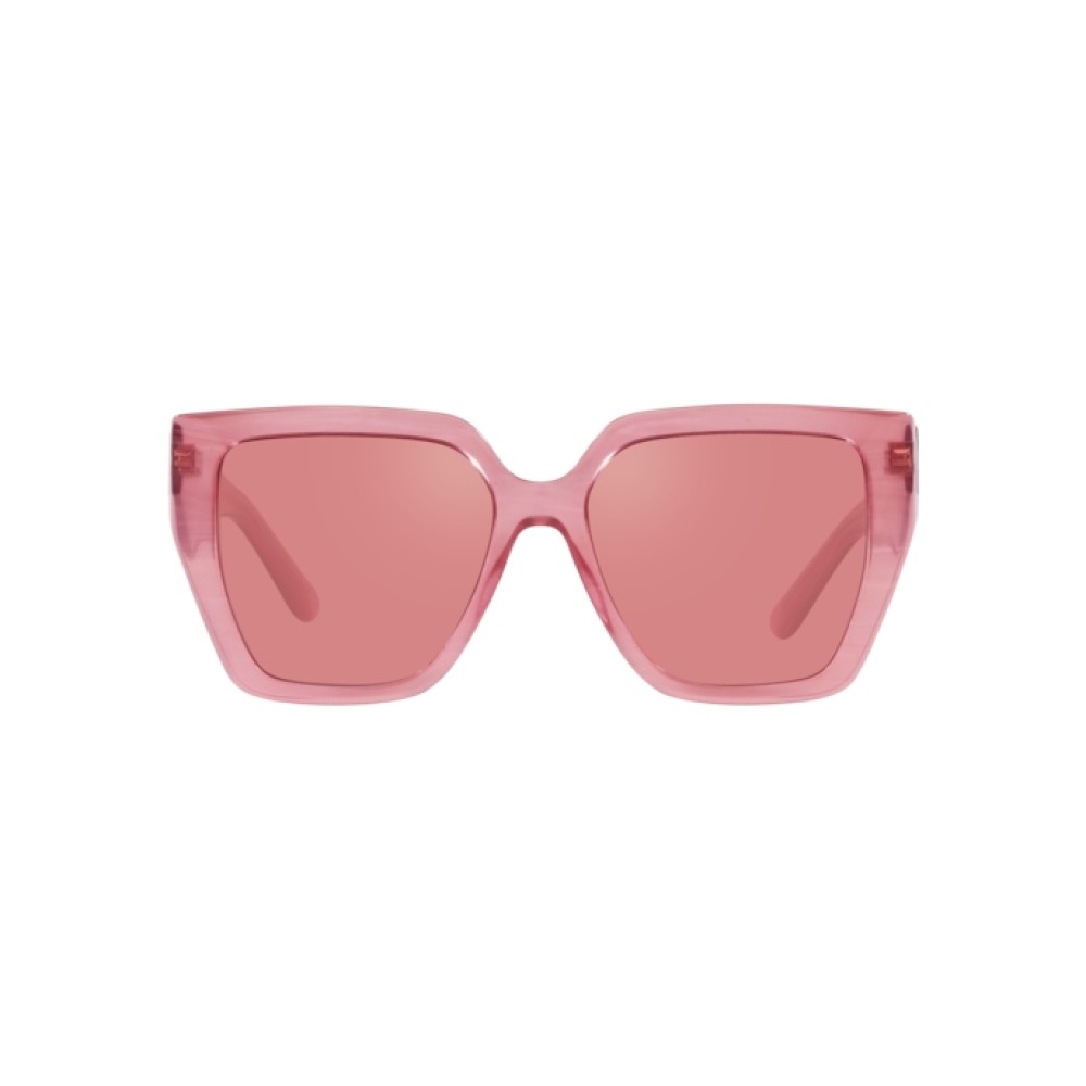 A rendere unico il modello DG4438 sono le aste laterali dal profilo alto, dove spicca il monogramma DG in oro a rilievo. Questo contrasto tra il rosa delicato della montatura e il metallo prezioso del logo incarna perfettamente il DNA della maison. Le lenti sfumate o uniformi (a seconda della variante) garantiscono una chiarezza visiva impeccabile e una protezione certificata contro i raggi solari.