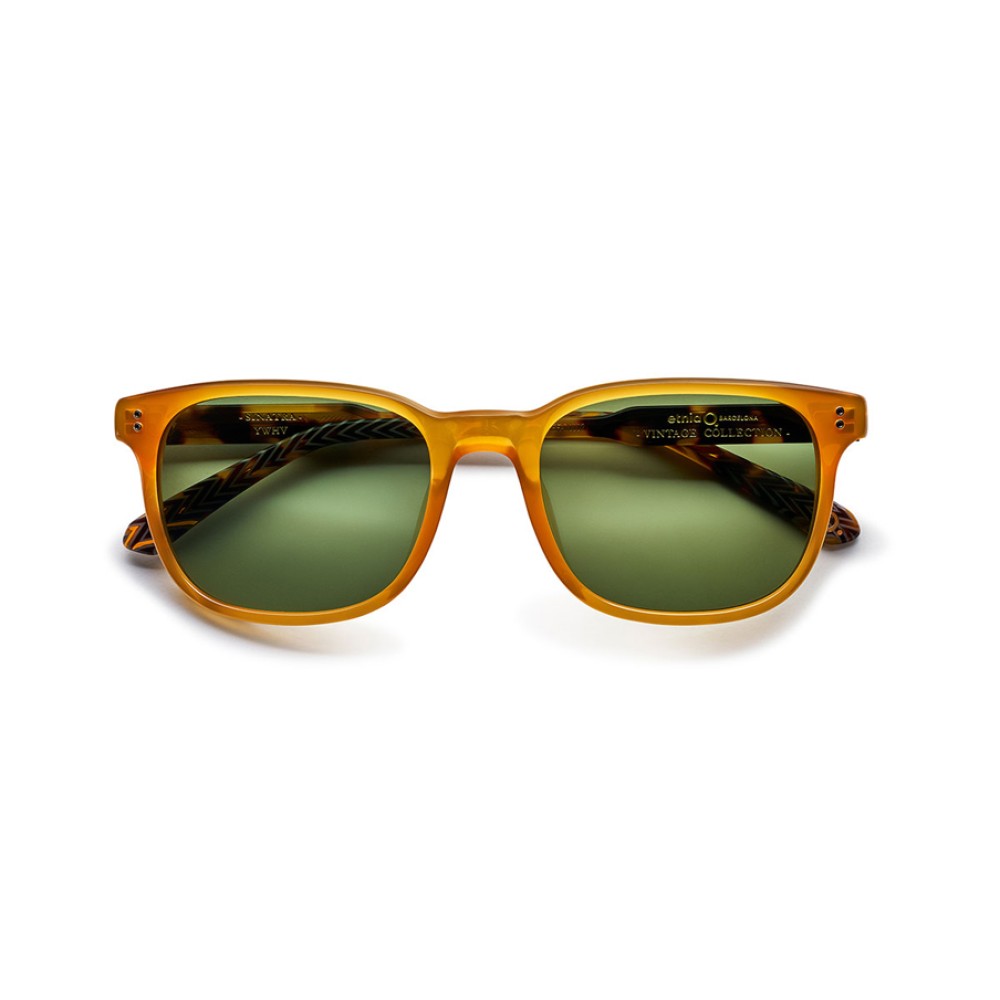 Occhiali da sole Etnia Barcelona Sinatra YWHV con montatura giallo Havana e lenti verdi polarizzate. Design deciso, colore distintivo e comfort visivo elevato.