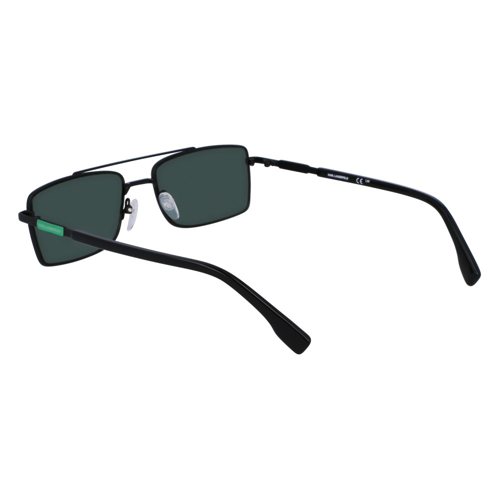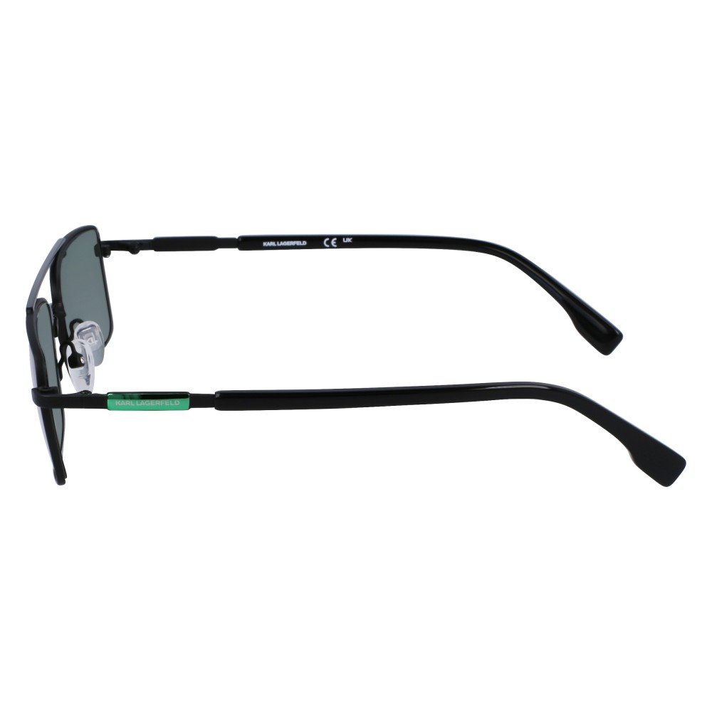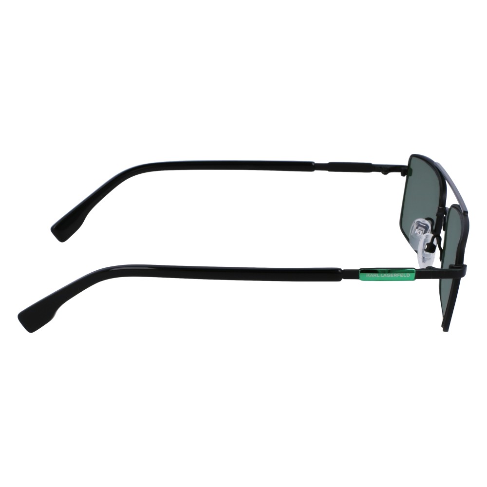 Occhiali da sole Karl Lagerfeld modello KL348S con montatura in metallo nero e lenti verdi. Linee pulite, look urbano, comfort leggero per uso quotidiano.