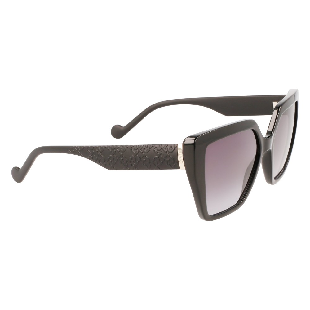 Gli occhiali da sole Liu Jo LJ757S 001 uniscono design deciso e dettagli glamour. La montatura nera lucida con aste logate e lavorazione tono su tono valorizza il volto con una forma ampia e femminile. Le lenti sfumate proteggono dai raggi UV e completano uno stile elegante, ideale per ogni giorno.