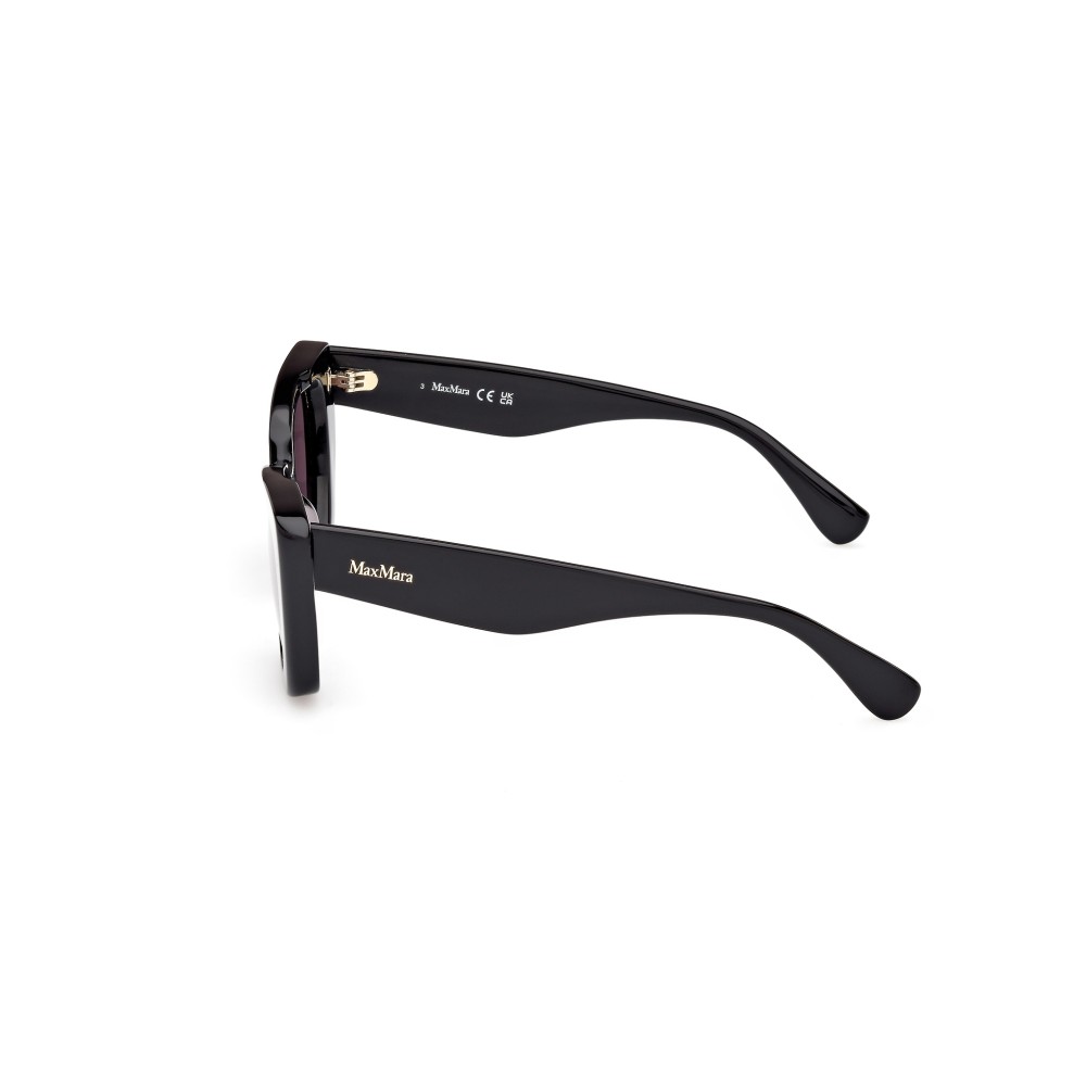 Occhiali da sole Max Mara MM0099 5001A 5018 da donna con forma cat eye ampia e montatura nera lucida. Lenti grigio sfumato con protezione UV. Linee eleganti e design deciso per uno stile femminile e contemporaneo.