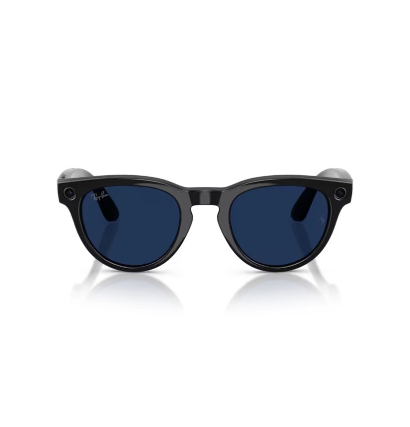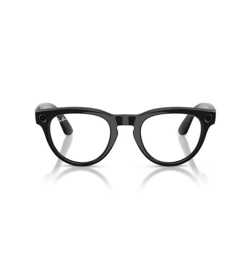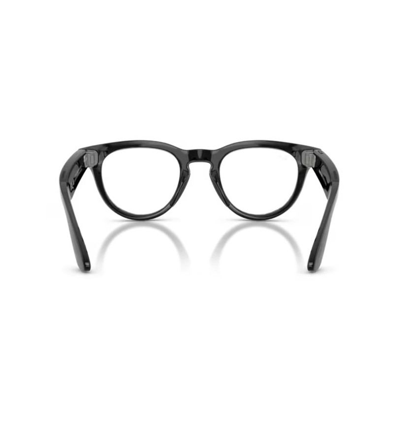 Occhiali smart con Meta AI dal design classico, ideali per foto, video e comunicazione senza usare lo smartphone. Montatura nero lucido con lenti Transitions® da trasparente a zaffiro che si adattano perfettamente alla luminosità, con protezione totale UVA e UVB.