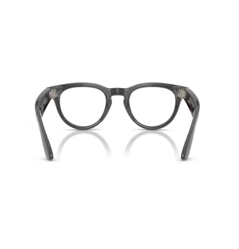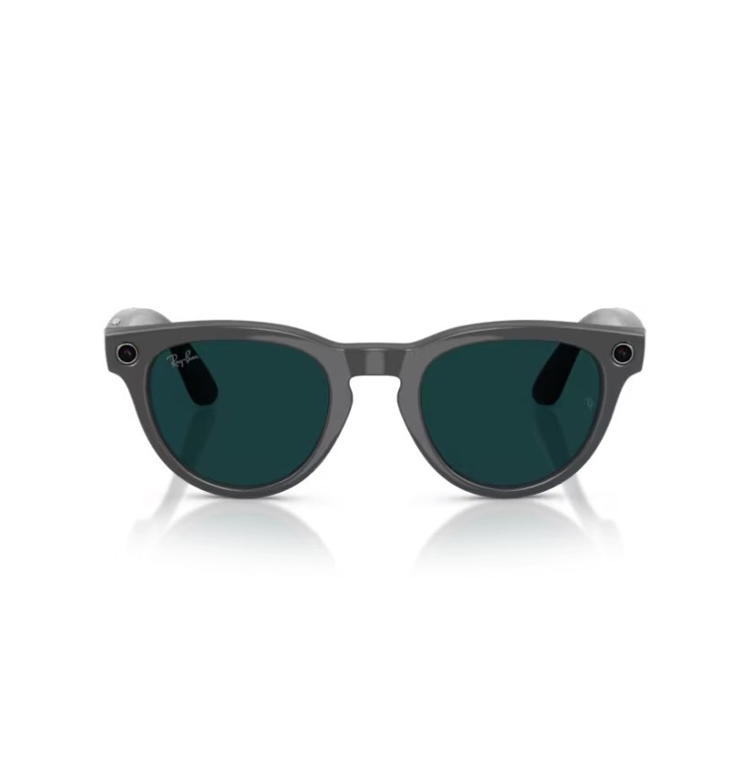 Occhiali smart con Meta AI dal design classico, ideali per foto, video e comunicazione senza usare lo smartphone. Montatura grigio Asteroid lucido con lenti Transitions® smeraldo, con protezione totale UVA e UVB.