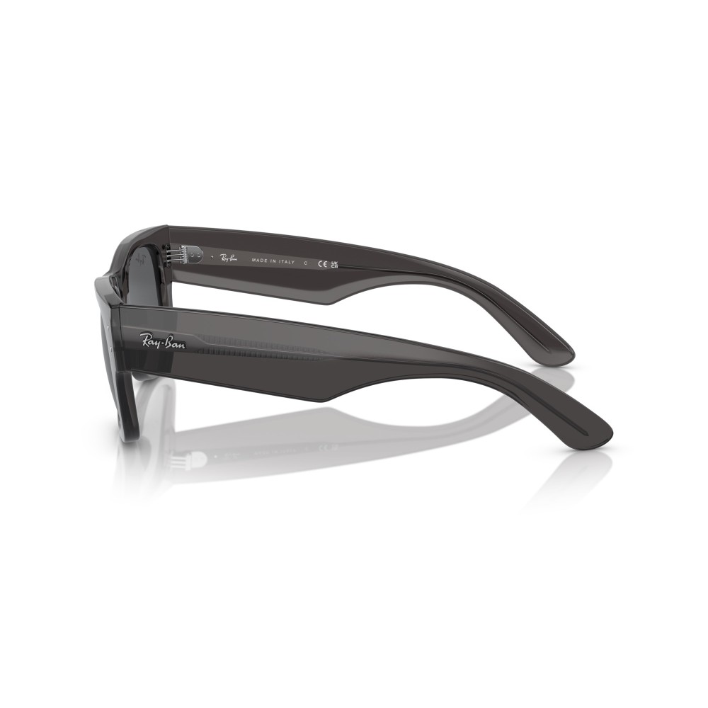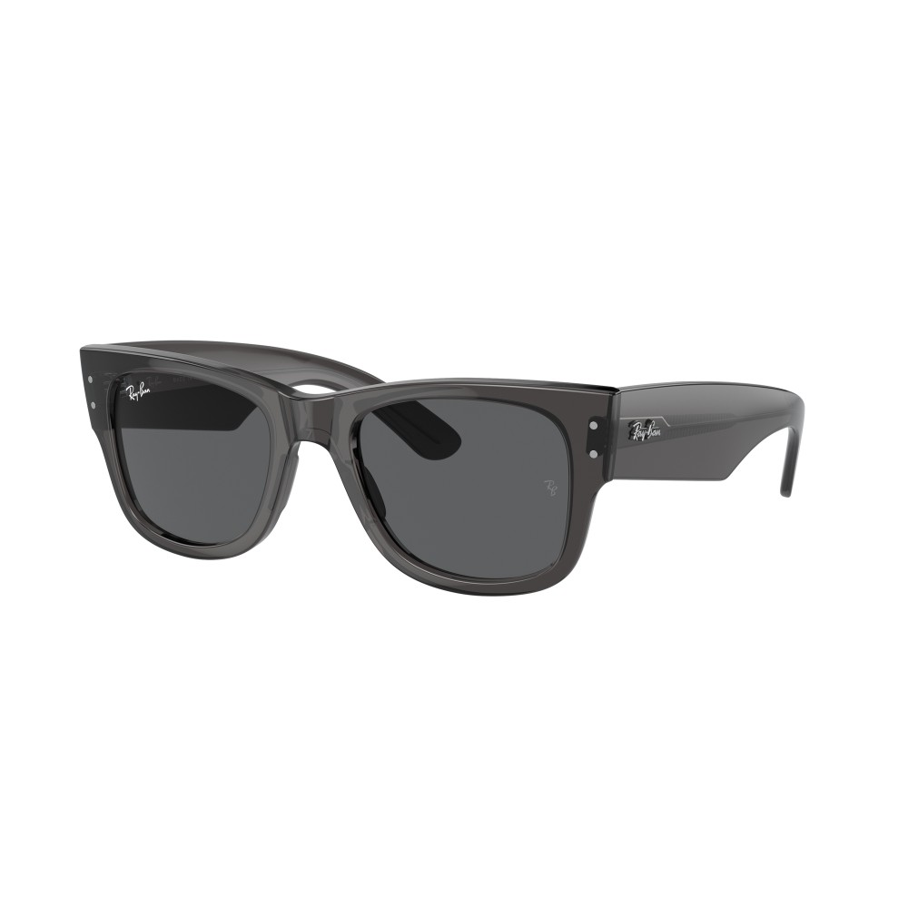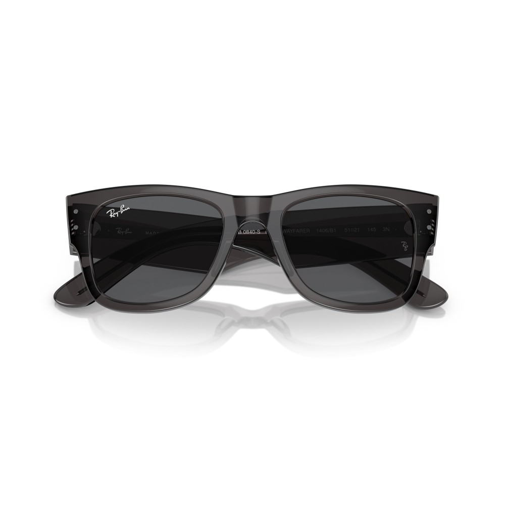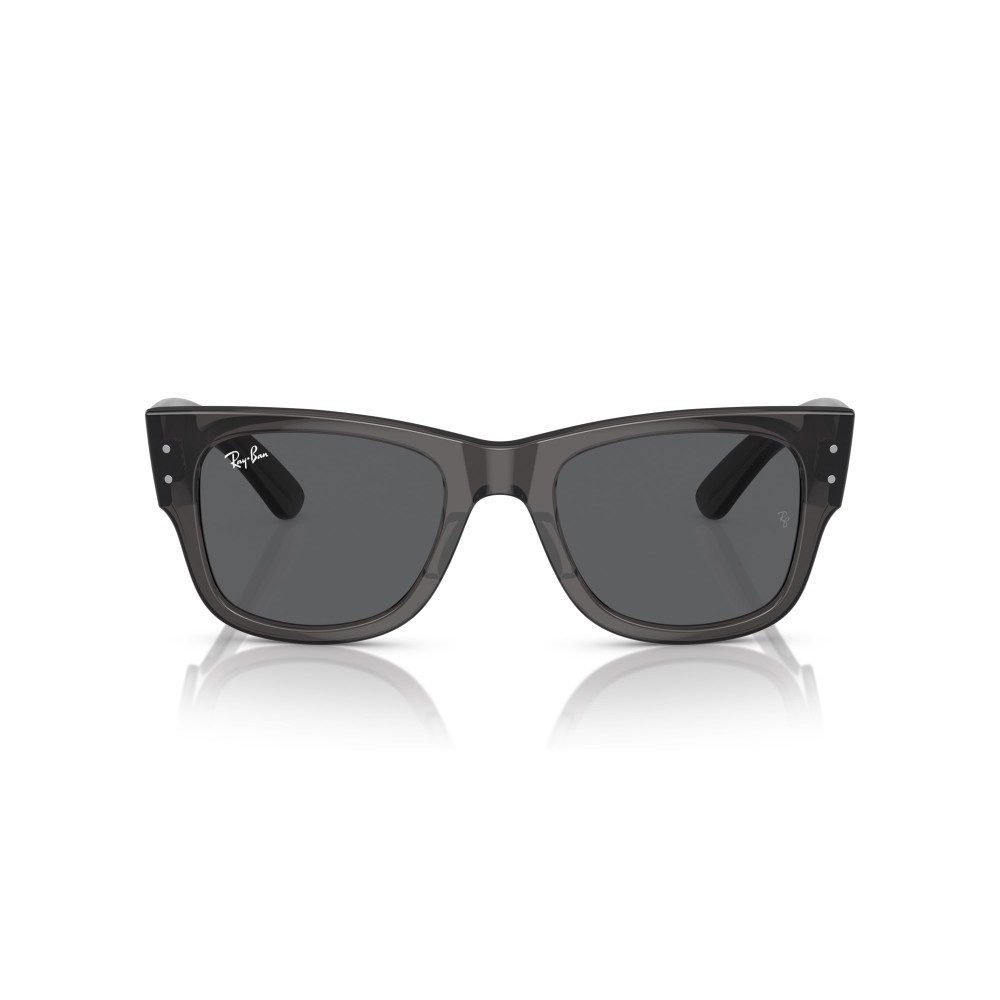 Ray-Ban RB0840S Wayfarer Mega è un occhiale da sole con montatura grigio trasparente e lenti grigio scuro. Linea spessa, forma squadrata e stile deciso. Un modello iconico rivisitato in chiave moderna.
