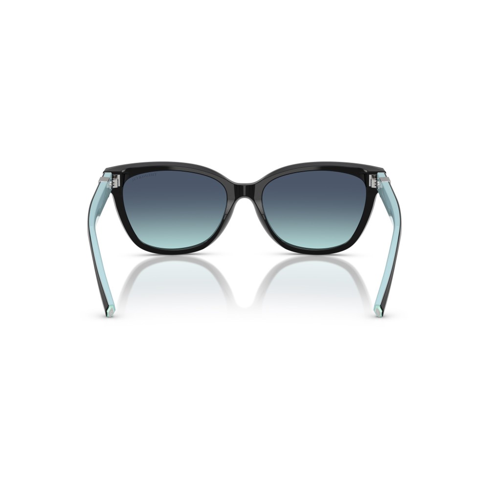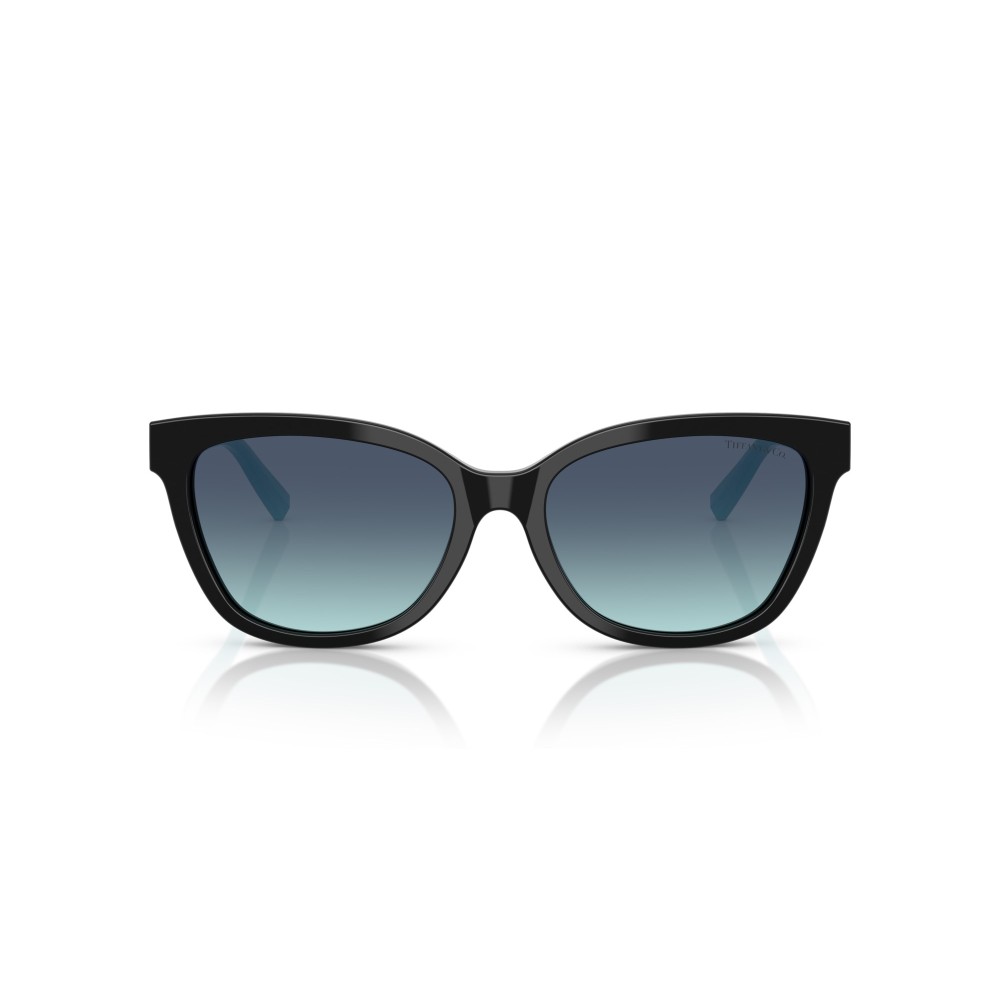 Gli occhiali da sole Tiffany & Co. uniscono eleganza e stile contemporaneo. Montatura nera lucida con dettagli iconici color Tiffany Blue sulle aste interne e lenti sfumate grigio verde. Un modello femminile raffinato, perfetto per chi cerca occhiali da sole di lusso dal design ricercato.