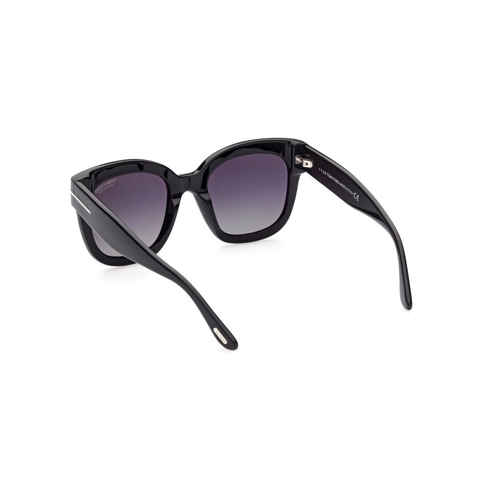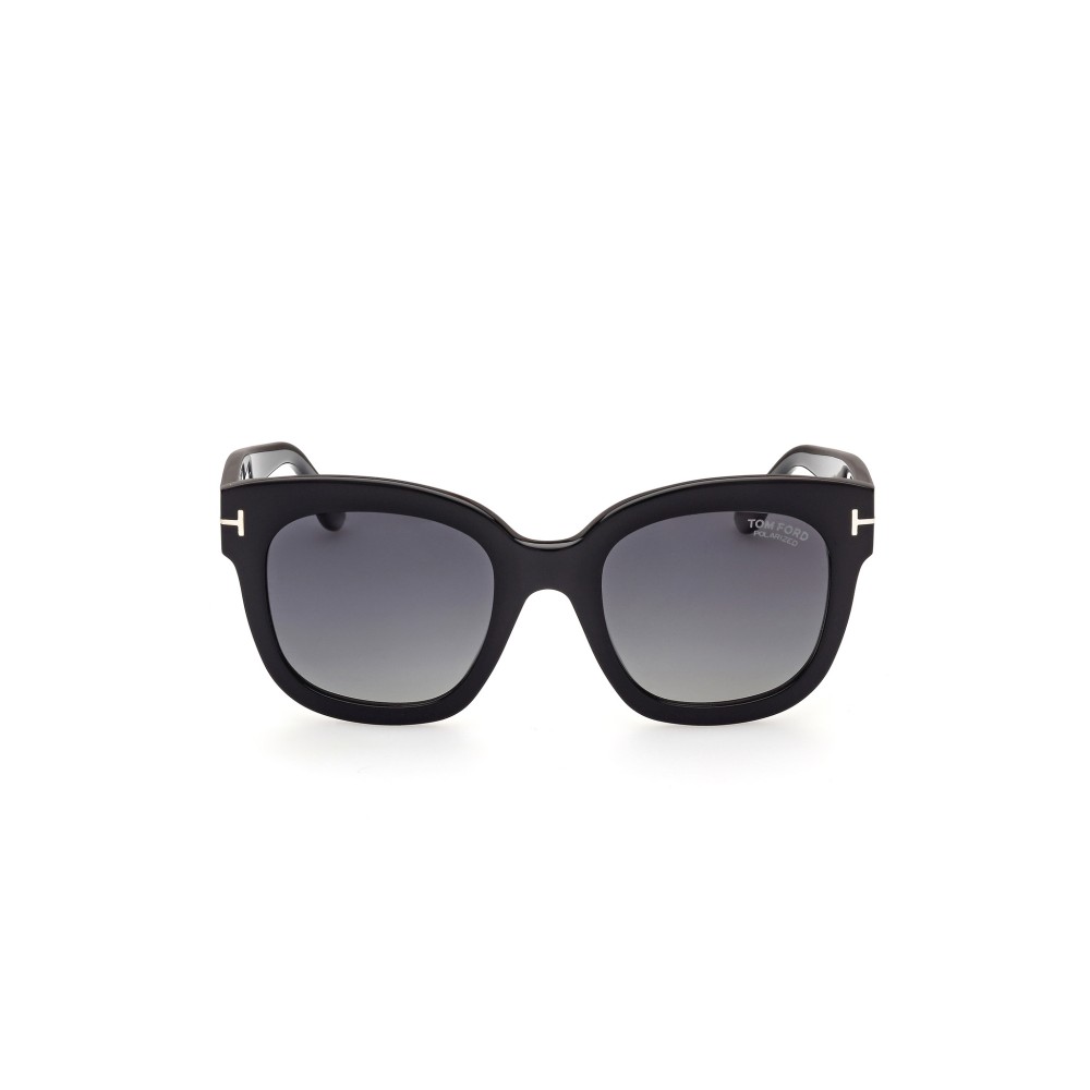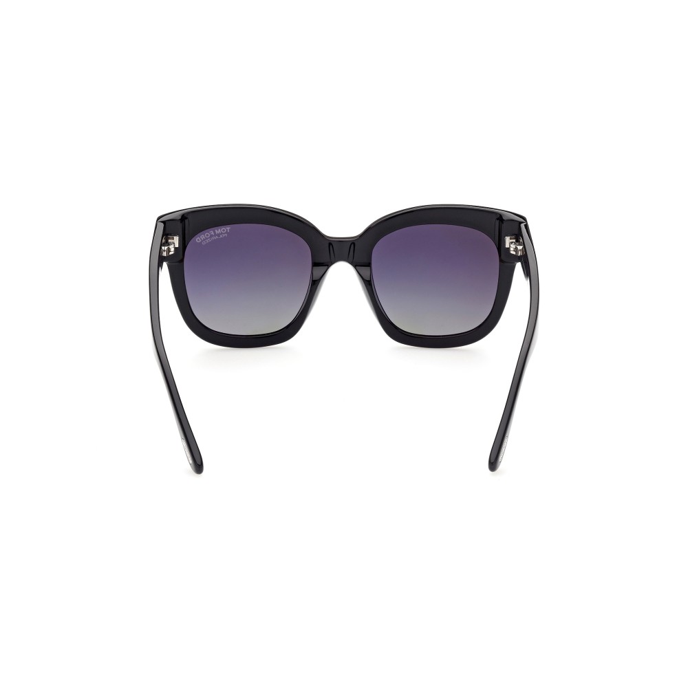 Occhiali da sole Tom Ford FT0313 01D da donna con montatura nera lucida e iconico dettaglio a T in metallo sulle aste. Forma ampia e femminile, lenti sfumate grigio con tecnologia polarizzata per una visione nitida e senza riflessi. Modello di lusso, realizzato in Italia, perfetto per chi cerca eleganza e protezione UV in un unico accessorio.