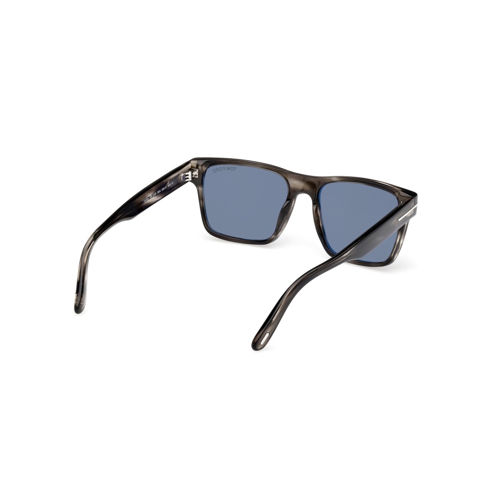 Occhiali da sole Tom Ford FT1205 56A con montatura in acetato Havana lucido e lenti grigio fumo. Design squadrato deciso, dettagli iconici con logo T in metallo sulle aste e qualità Made in Italy. Protezione UV completa e stile elegante per uomo.